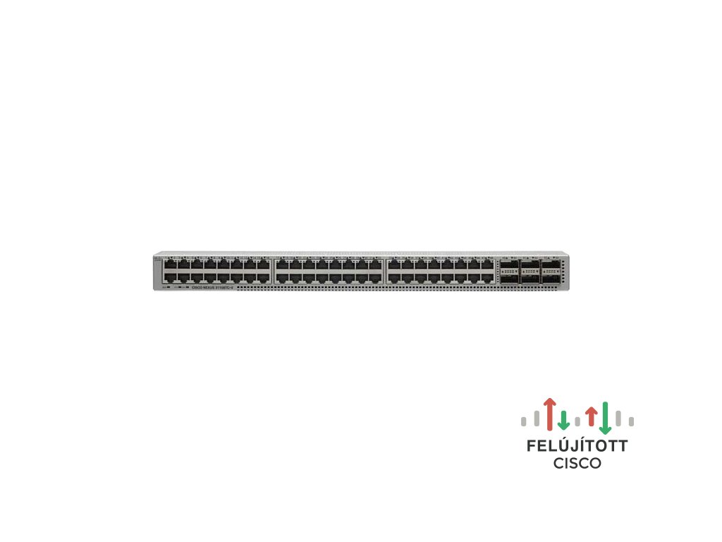Cisco Nexus N3K-C31108TCV-32T=. Kapcsoló típusa: Vezérelt, Kapcsoló réteg: L2/L3. Alapvető kapcsolási RJ-45 Ethernet portok típusa: 10G Ethernet (100/1000/10000), Alapvető kapcsolási RJ-45 Ethernet portok száma: 32, Konzol csatlakozó: RJ-45. MAC-címtábla: 288000 bejegyzés(ek), Kapcsolási kapacitás: 2160 Gbit/s. Hálózati szabvány: IEEE 802.1D, IEEE 802.1Q, IEEE 802.1ab, IEEE 802.1p, IEEE 802.1s, IEEE 802.1w, IEEE 802.3ad, IEEE.... Keretállvány, Külső megjelenés: 1U